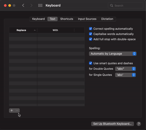 - In the Replace column enter the ‘Trigger Word’ you would like to use